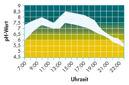 Tagesprofil: pH-Wert im Urin gemessen (messbar z.B. mit Indikatorpapier von Pascoe)