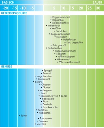 Überwiegend basenbildende vollwertig-vegetarische Kost mit viel Gemüse, Obst. Die Ernährung sollte aus: