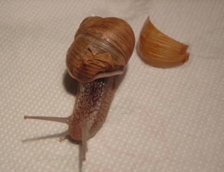 Schnecken besitzen sehr gute Selbstheilundkräfte, so dass selbst grössere Hausschäden wieder repariert werden können.